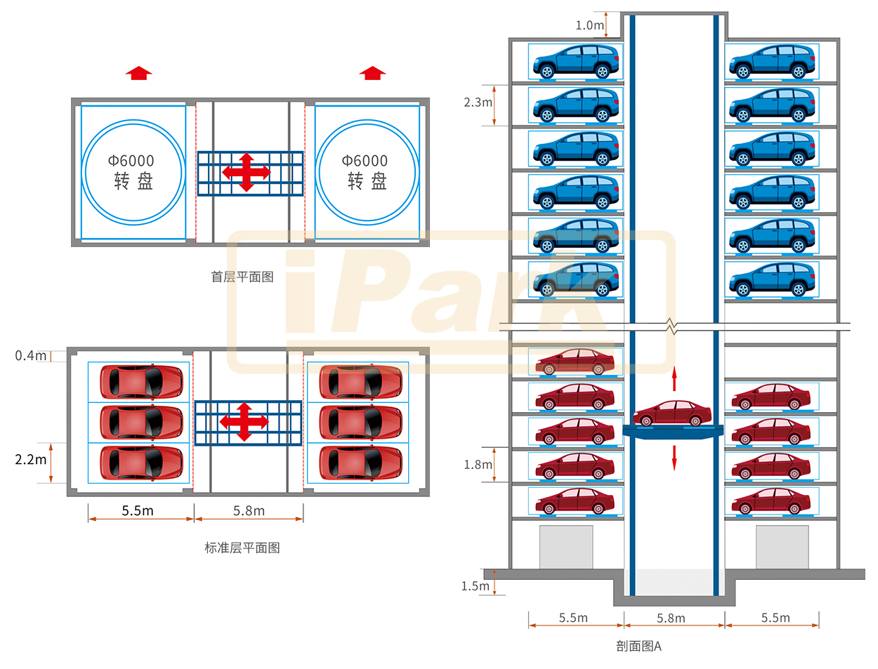 垂直升降运行,提高了车辆出入库效率
