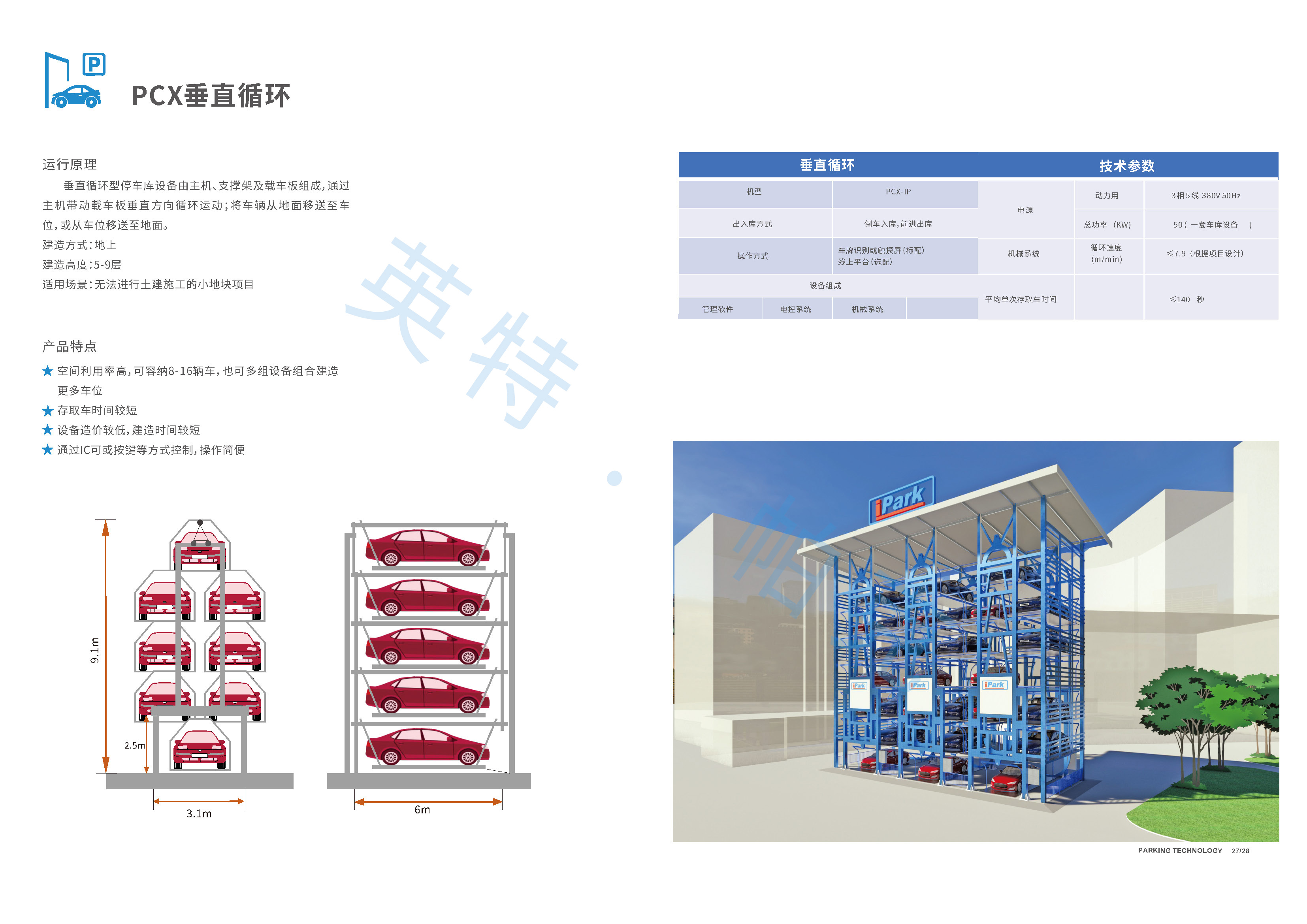 | 操作方式 | 车牌识别或触摸屏(标配);线上平台(选配) | 循环速度 | 4m/min |