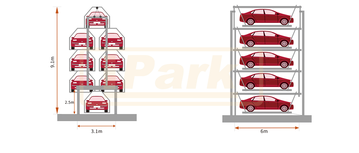 空间利用率高,可容纳8-16辆车,也可多组设备组合建造更多车位